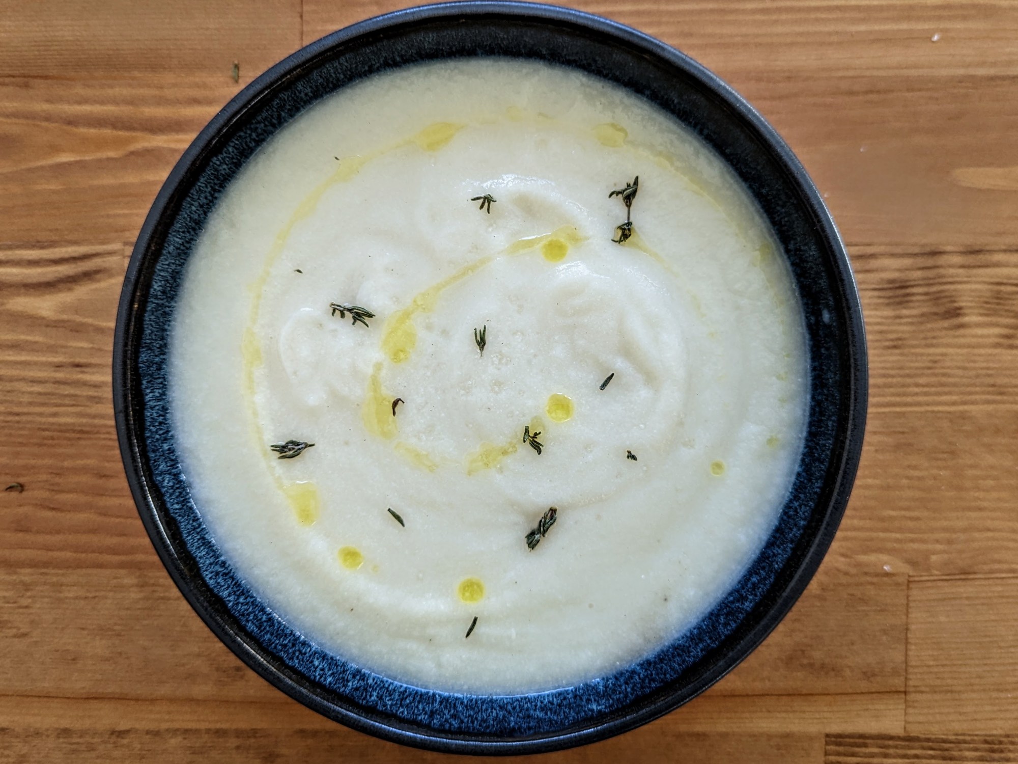 Ajouter le chou-fleur et le bouillon puis mijoter a couvert jusqu’à ce que le chou-fleur soit très tendre.