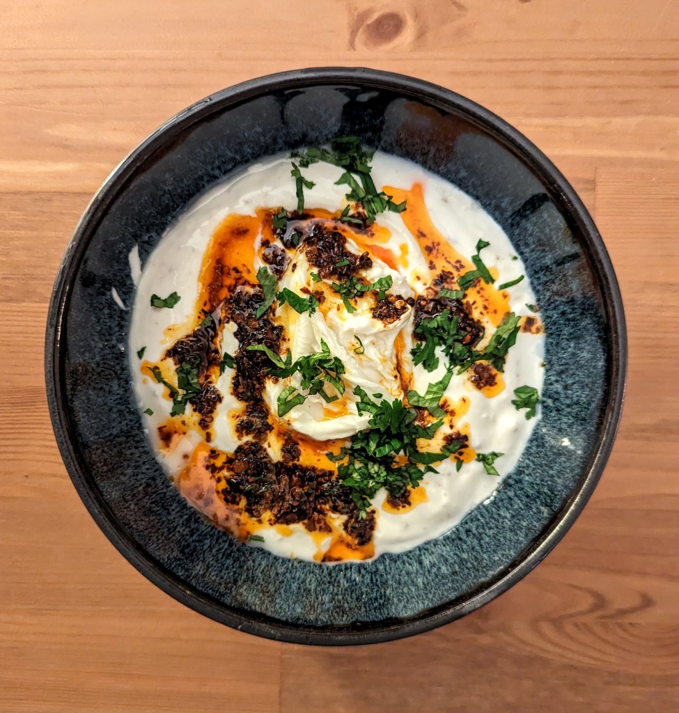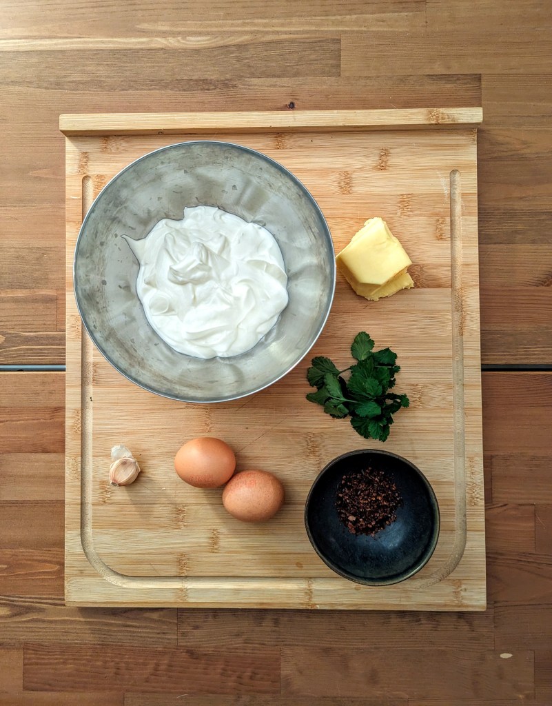 Verser le yaourt dans les bols et garnir d’œufs pochés. Verser le beurre au piment sur les œufs. Servir avec du pain