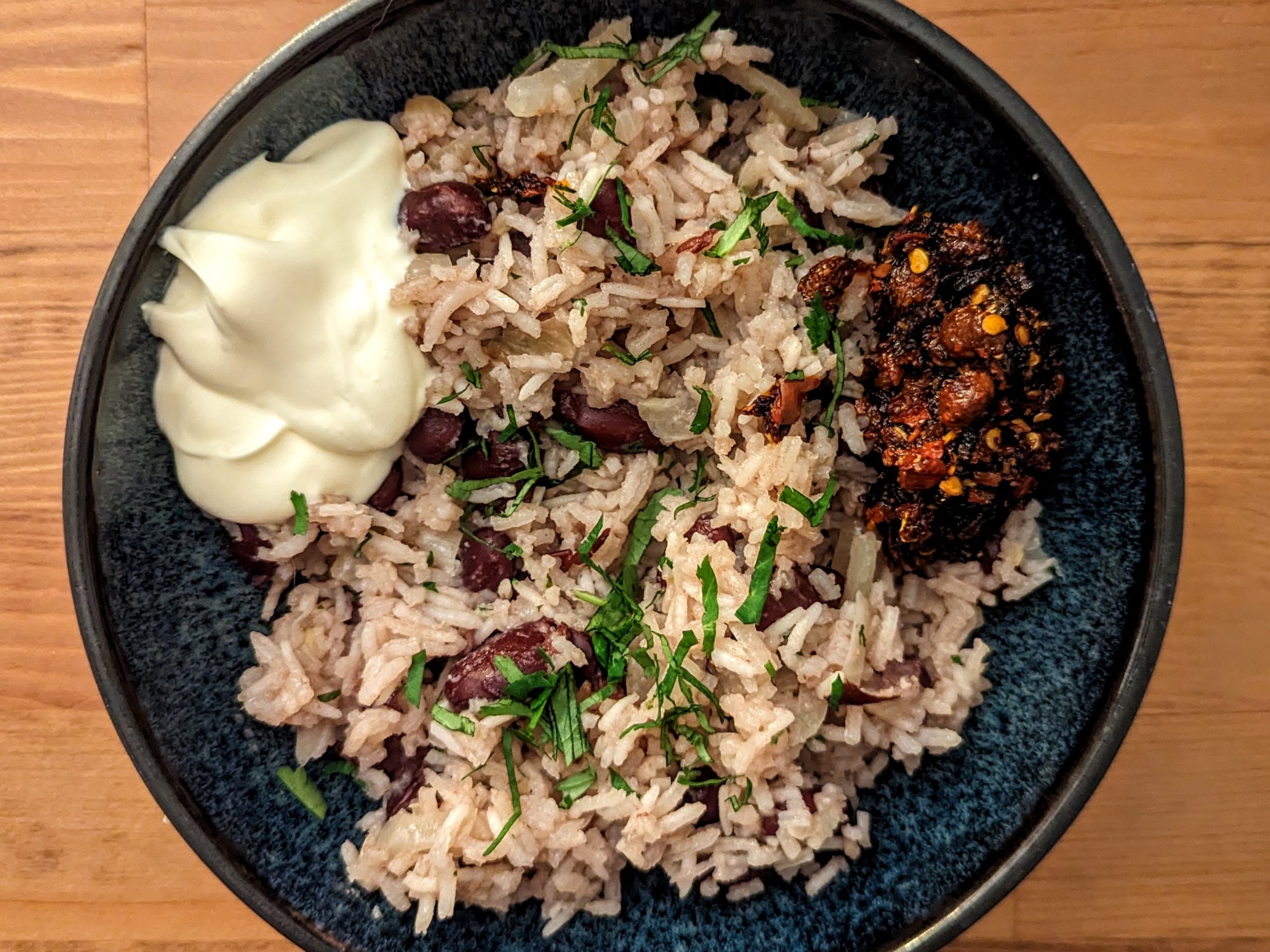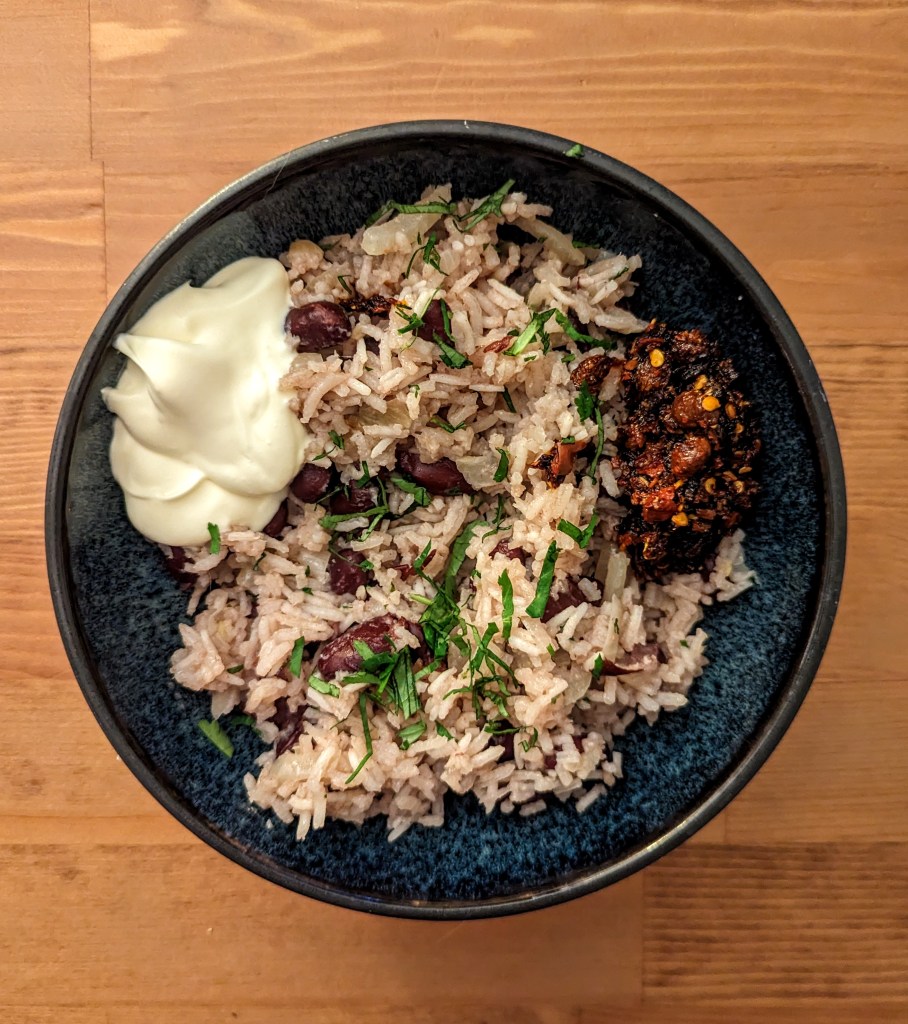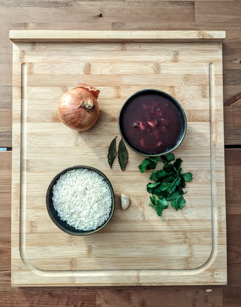 Ajouter le sel, le riz, le laurier et les haricots (y compris le liquide). Remuer puis couvrir et baisser le feu au minimum. Mijoter 20 minutes.