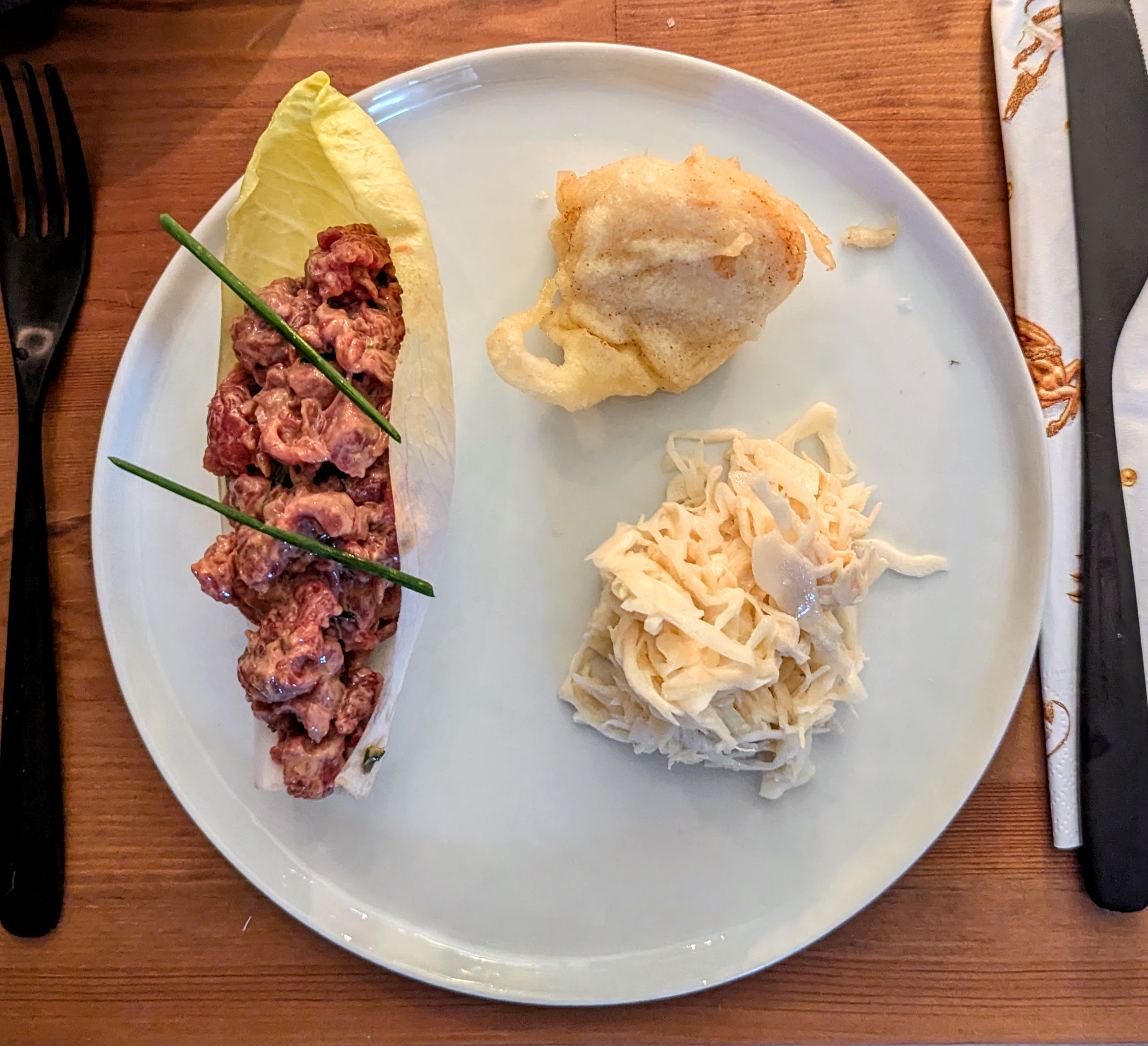 Mélanger dans un bol la mayonnaise, miso, soja, huile de sésame et ciboulette ciselée. Ajouter la viande et saler au goût