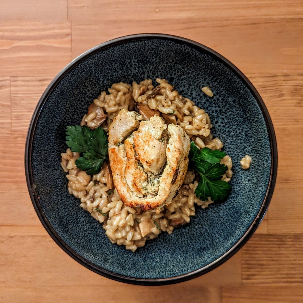 Ballottine de Poulet-Pesto et Risotto au Champignons
